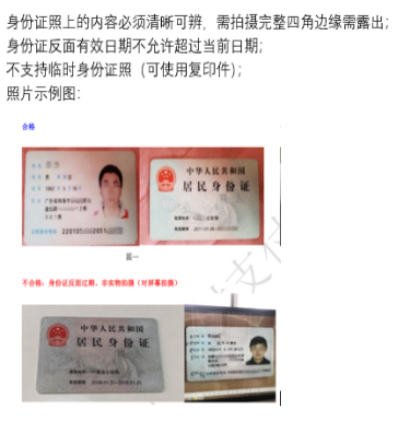 备注:银行卡照片必须有卡号信息,当银行卡卡号完全无法识别时:把卡号完整的写在纸上,附上银行卡。如有持卡人签名,签名需与银行卡系统姓名一致;