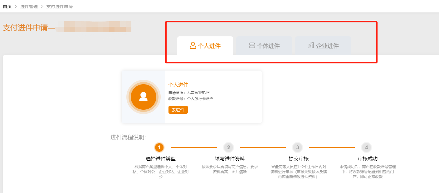 4.根据商户类型选择对应的方式点击进件