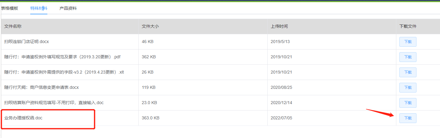 下载路径:代理商后台-申请模板下载-特殊材料-业务办理授权函下载