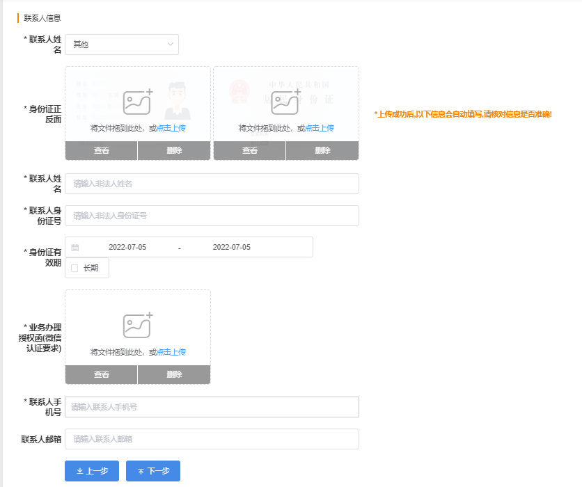 上传清晰照片后,系统自动识别信息,识别完成,请注意核对信息是否准确!
