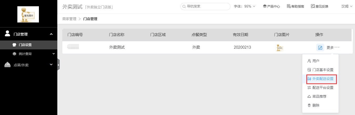 进入方式:门店管理——更多——外卖配送设置