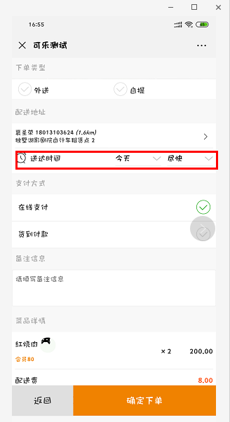 新增外卖送达时间