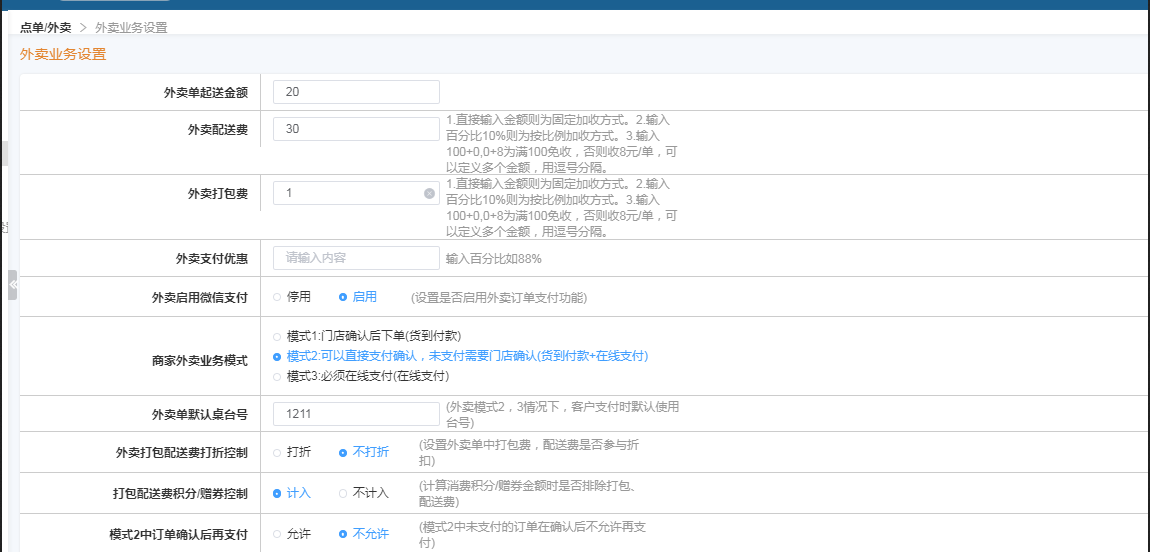 3.打包费设置同外卖费。