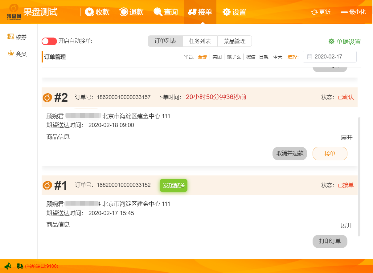4、测试下单是否能正常接单
