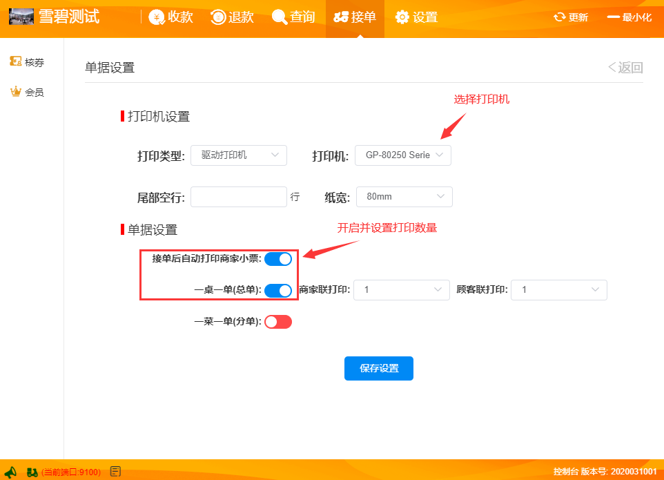 3、设置要打印机机及单据设置