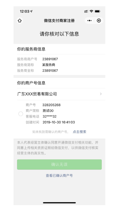 第二步 再进行核实收款商户号操作