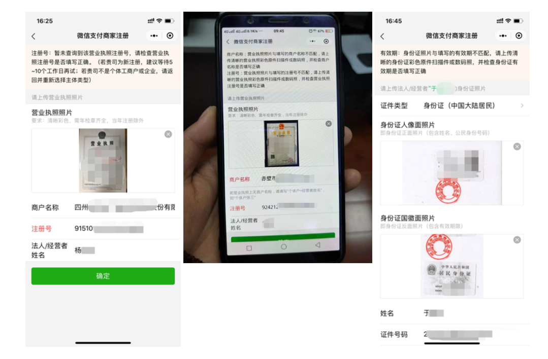 Q26: 请问填写商户名称、营业执照号、营业执照信息与证件信息一致,但注册提示名称和注册号不一致,如何处理?