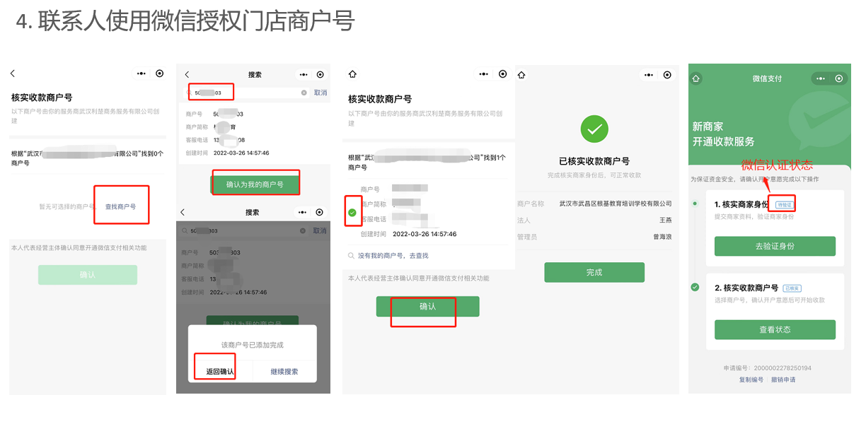 5、联系人使用微信授权门店商户号(即微信子商户)