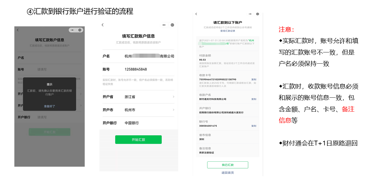 ②当企业商家法人不方便授权时,可使用打款验证来代替。注:打款验证仅限于企业、民办非企业单位类型商户,个体工商户、小微商户类型只能法人验证。
