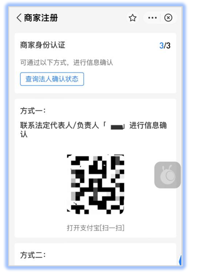 ◆谁都可以扫这个二维码,谁扫码操作了谁就是商户的联系人(建议由法人扫码操作),验证那一步需要商户法人操作(企业性质可对公打款验证)