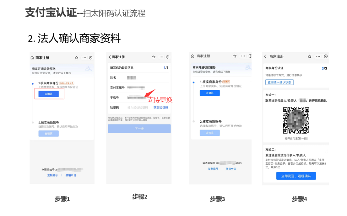 A3:商家可以自己通过进入“支付宝商家认证助手”小程序提交商家资料,完成法人确认并完成收款账号绑定。