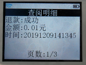 密码输入正确后进入此界面,商户输入要退环的金额,点击确认,即可进行退款。退款金额不可大于交易金额。