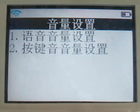 ⚫ 语音音量设置;点击语音音量设置,显示当前音量和语音音量调 节的范围,并提示增加【按键 UP】,减少【按键 DOWN】