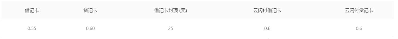上游刷卡默认费率: